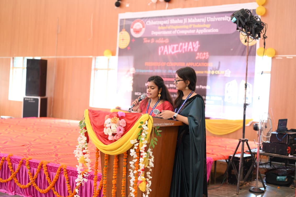 On September 23, 2023, the Department of Computer Applications hosted "Parichay," a vibrant freshers party welcoming BCA and MCA students. The event buzzed with excitement as new students were introduced to their academic journey. Parichay offered a platform for networking, fostering friendships, and initiating a sense of belonging. It featured interactive activities, performances, and inspiring speeches, creating a memorable experience for the incoming students.