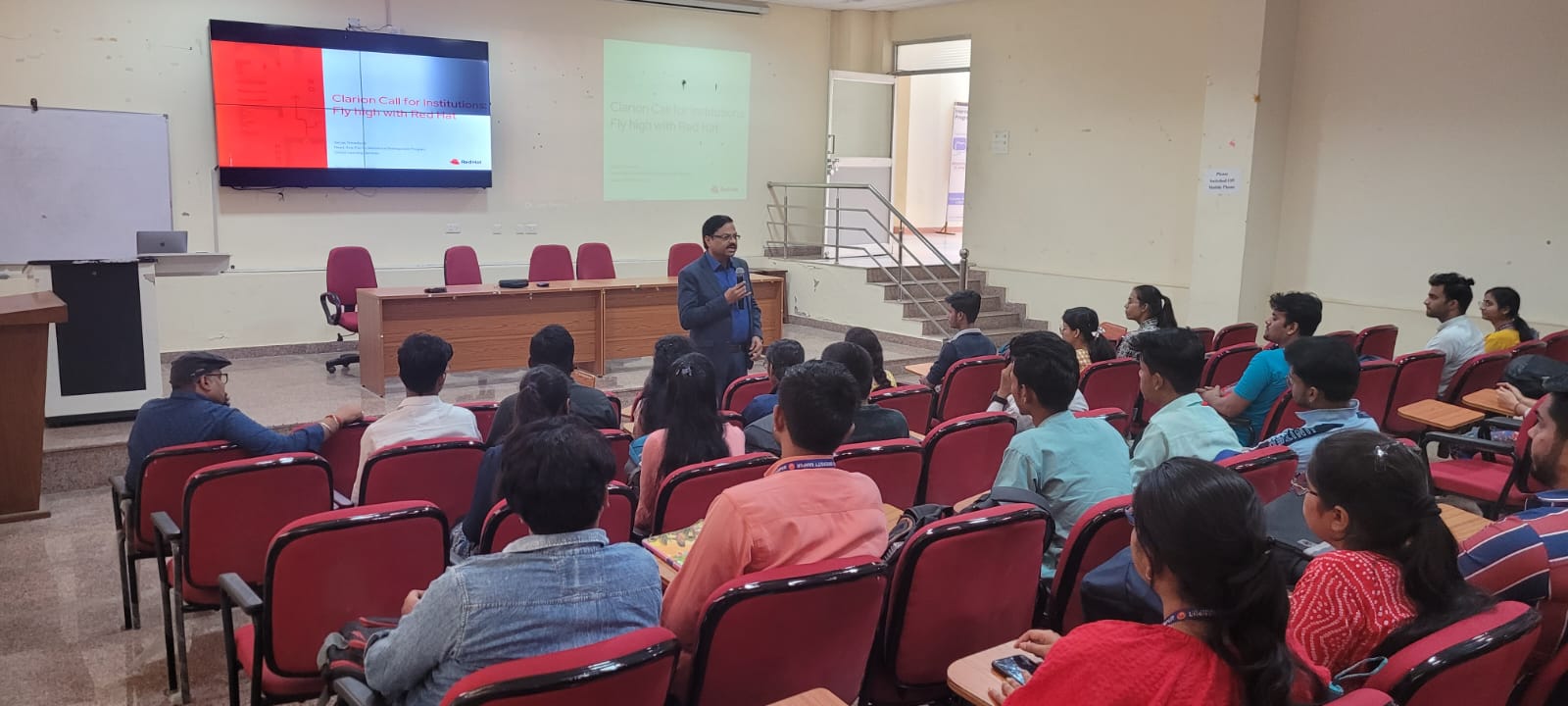 On April 26th, 2023, the Department of Computer Applications organized an interactive talk on Red Hat featuring Mr. Sanjay Srivastava, Head of Public Sector, Asia Pacific, as the guest speaker. The event provided valuable insights into Red Hat technologies and their applications. Students and faculty engaged in an enriching discussion, gaining knowledge from Mr. Srivastava's expertise in the field of open-source solutions.